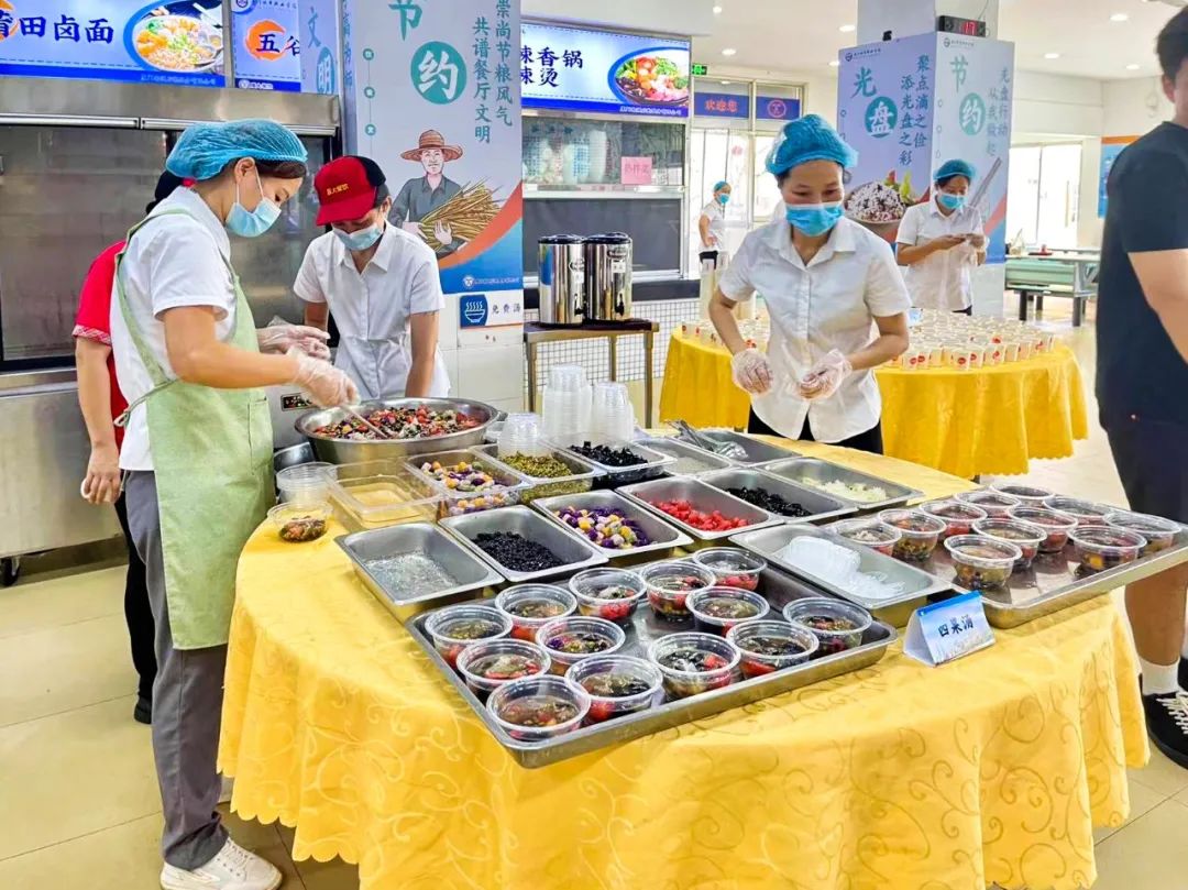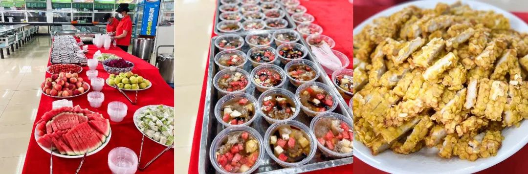 城市职业学院餐厅项目团队提前筹划,精心准备寓意“一帆风顺”水煮鱼片、“鱼跃龙门”川味烤鱼、“金榜题名”泡椒猪蹄、以及清凉解暑的四果汤等十余种象征美好寓意的菜品、水果、甜品和饮料,品种丰富,暖心暖胃,每一道菜都是“厦大餐饮”对毕业生独具匠心的吉祥祝福,让城职毕业学子的记忆增添一抹独特的“厦大味道”。
