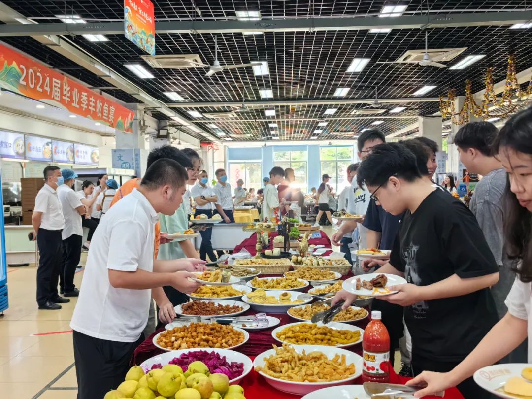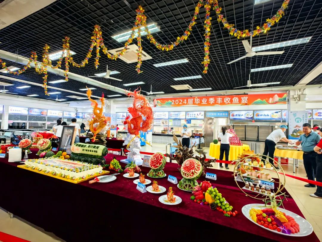 凤凰花开季,夏起长歌时。6月30日,厦门南强后勤服务有限公司(厦大餐饮)携手厦门城市职业学院,利用毕业季捕鱼节从校内湖中捕获的鲜鱼食材,共同为城职毕业学子打造一年一度专属盛宴——毕业季丰收鱼宴,衷心祝愿“橙汁”们年年有“鱼”,未来可期!