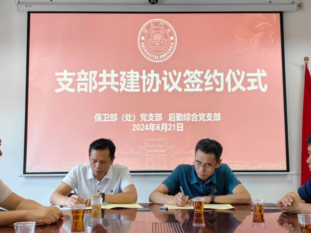 为进一步提升党建工作内在活力,以共建促党建,以党建促发展,6月21日上午,后勤集团综合党支部与厦门大学保卫部(处)党支部开展结对共建活动。保卫部(处)党支部书记徐跃进,集团副总经理王裕民,保卫处副处长涂建芳、林庆斌,综合党支部书记邓必洪及双方党支部党员代表参加了本次活动。