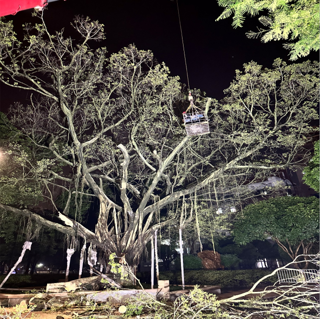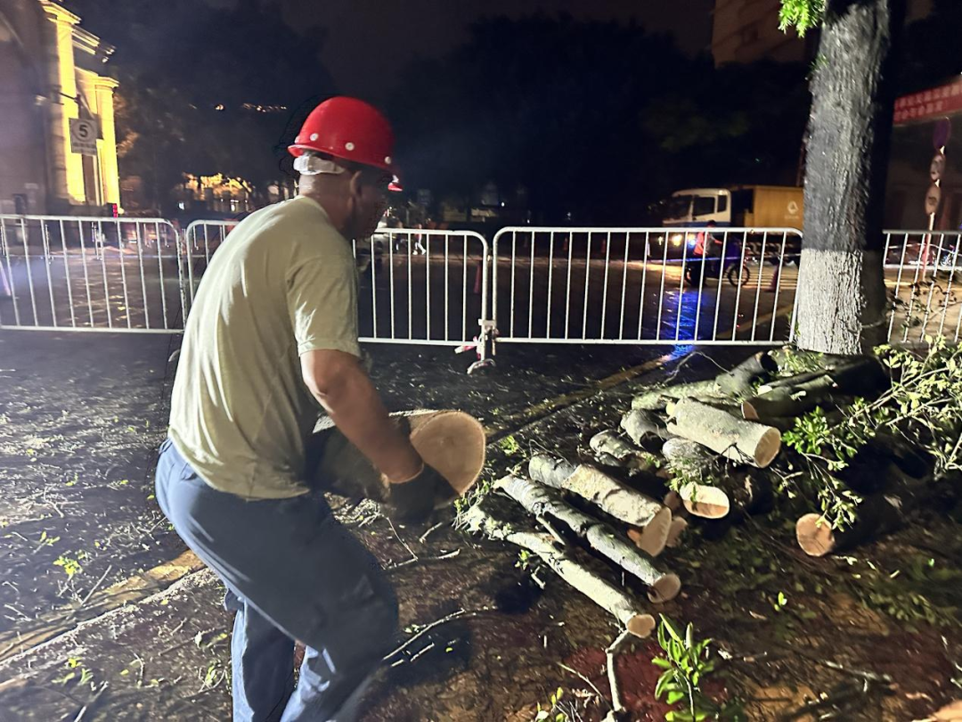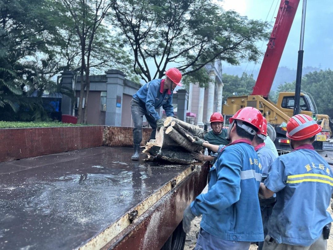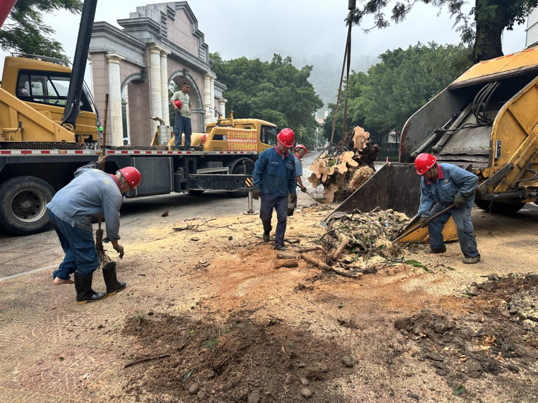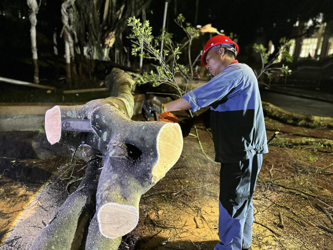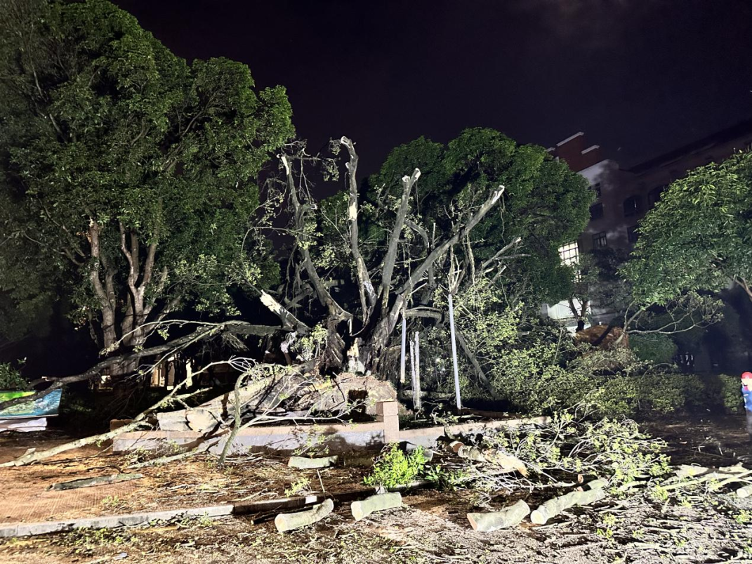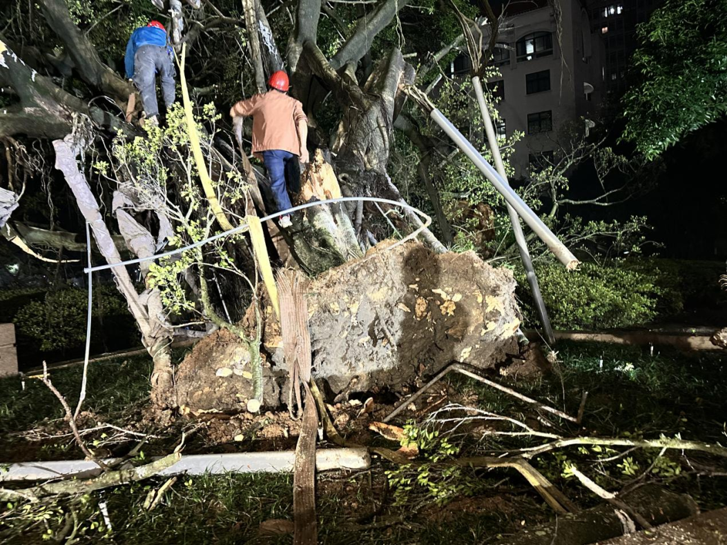 由于大榕树主根已腐烂,无法重新种植,抢险队员开始对大榕树进行切割处理并运走。大榕树的树冠、胸径大,枝叶繁茂,工作量巨大,抢险队员通宵达旦进行清理,清理工作整整持续了12个小时。