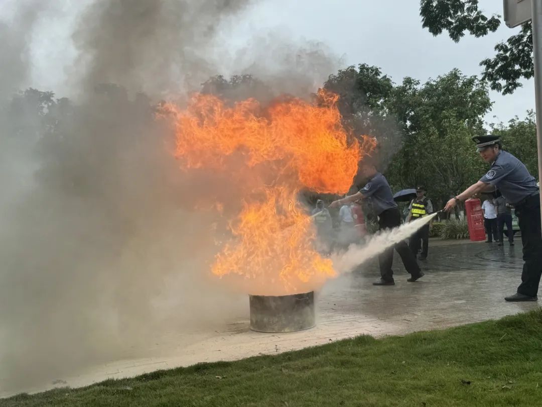 校园服务部在学生广场西侧模拟了森林防火演练。应急抢险人员在确保安全的情况下进行模拟桶灭火演练。随后,现场观摩人员依次进行灭火实操体验。