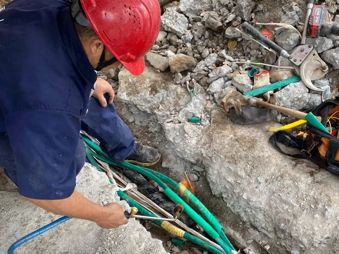 中心立即组织青年突击队全员上阵,布置抢修方案、准备抢修材料,组织抢修人员人工破除路面查找线路故障点,并同步协调外协单位机械入场清理作业现场……一系列恢复供电措施有条不紊地进行着,青年突击队全力以赴做好应急抢修工作。