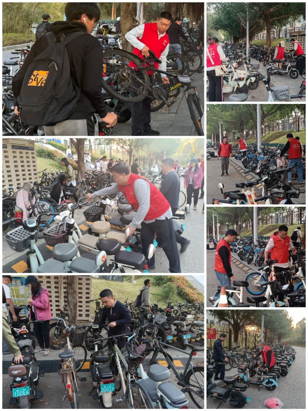国光13-15外环路作为校区道路拥堵较为严重的地段,尤其是傍晚行车高峰时段易造成交通堵塞和隐患,因此活动期间每天傍晚,有大量的党员们上路清理占用机动车道的电动自行车,并维护好交通秩序,保障过路师生的交通通行安全。