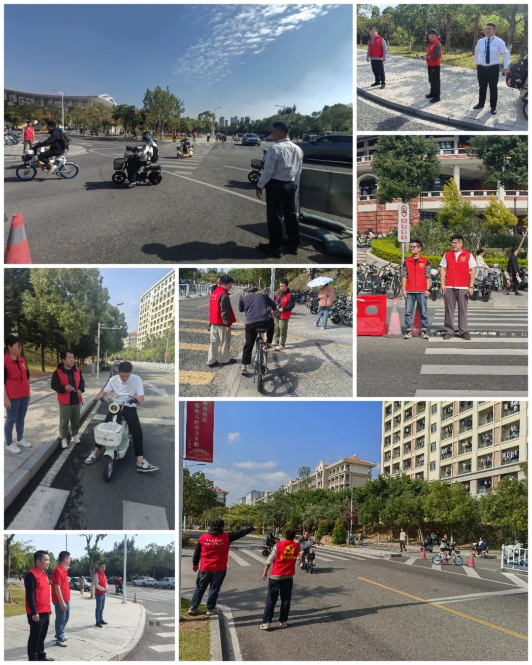 为确保安全教育入脑入心,本次活动为系列党日活动,服务办党支部的所有党员和联合支部的党员们分组上路执勤,12月2日至12月13日的每日中午时分,党员们在思源餐厅外的转盘各路口纠正交通秩序,劝导行人行走横道,监督电动自行车按道行驶,督导机动车超速,车辆超标改装,电动自行车未挂牌等违规问题。同时对骑车带耳机、撑伞、打手机、单手驾车,转弯未靠边等行为进行劝导。