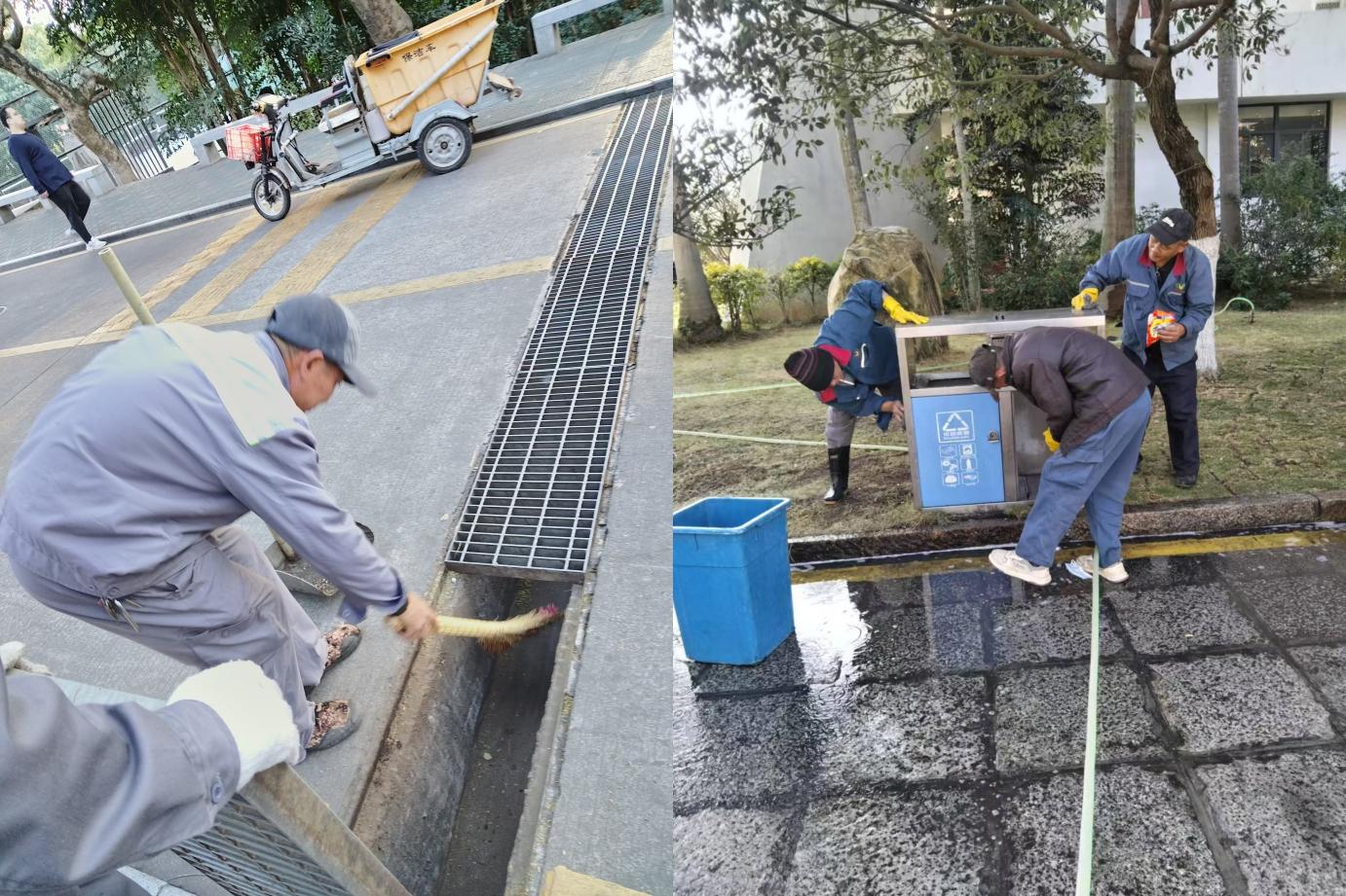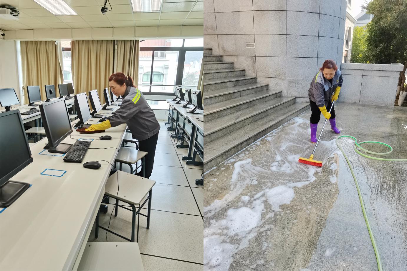 为使留校师生度过一个安全祥和的寒假和春节,公环人对学生宿舍、公共教室、体育场馆、校园环境等进行全面的卫生大扫除。