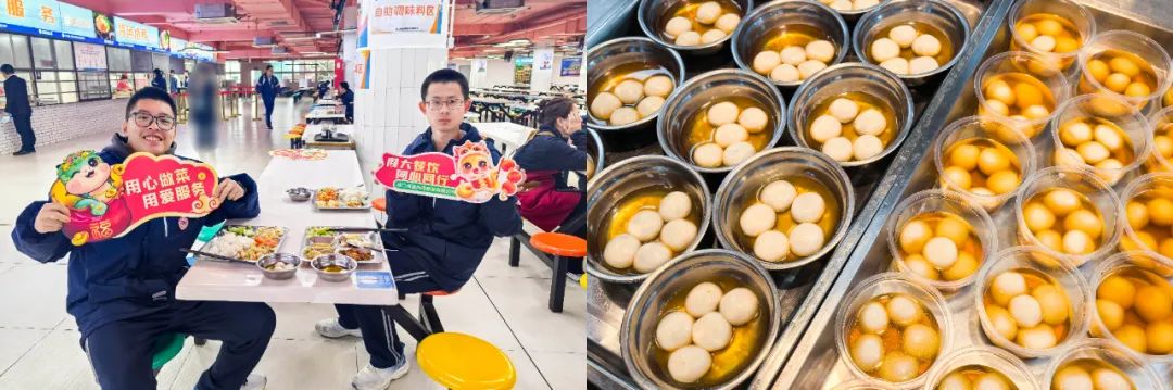 部分学校餐厅积极与师生员工开展互动,并送上代表“大吉大利”美好寓意的橘子,大家齐聚一堂,猜灯谜、搓汤圆、包饺子,现场气氛热烈,其乐融融。同时,餐厅也为大家提供热气腾腾、口味丰富的节日美食,让大家充分感受到元宵的节庆气氛、家的温暖。