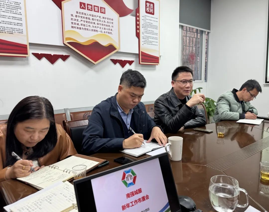 2月14日下午,厦门南强城市服务有限公司召开新学期工作布置会。公司一级岗人员、各部门及项目负责人参加会议。公司总经理薛荣城主持会议,集团副总经理李启忠到会指导。