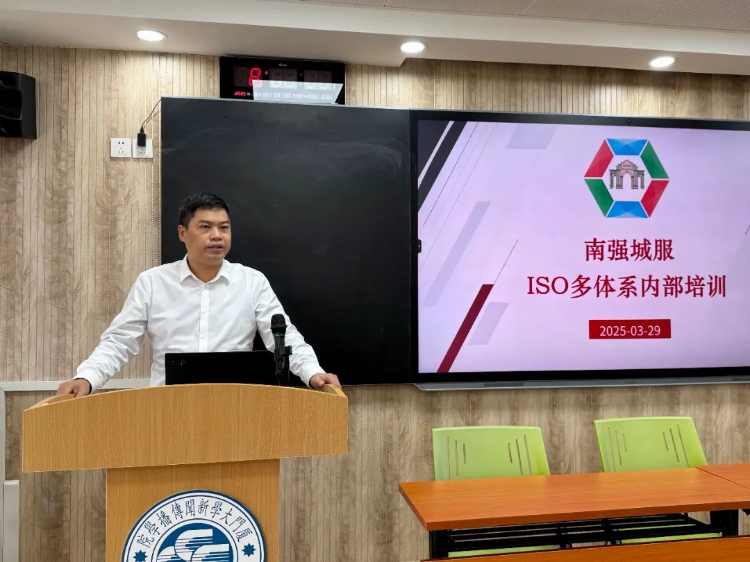 为深入贯彻落实集团制度建设的相关工作要求,推动标准化管理体系建设,提升全员安全服务意识,3月29日,南强城服公司在新闻传播学院至善楼309教室组织开展ISO多体系内部培训,公司领导班子及管理骨干40余人参训。