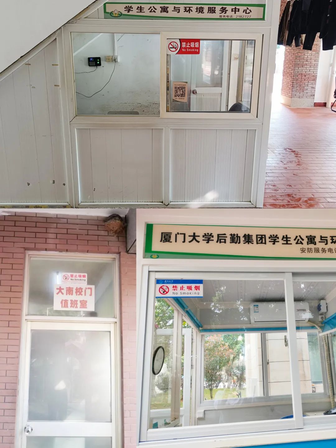 针对以往岗亭周边存在烟头散落、执勤人员违规吸烟等问题,中心打出“宣传+整治+疏导”组合拳,在校门及宿舍岗亭张贴禁烟标识及禁烟标语,全面清除岗亭内的烟灰缸、打火机等物品,并明确执勤期间吸烟将面临通报批评及扣除绩效等处罚措施,全力营造无烟环境。