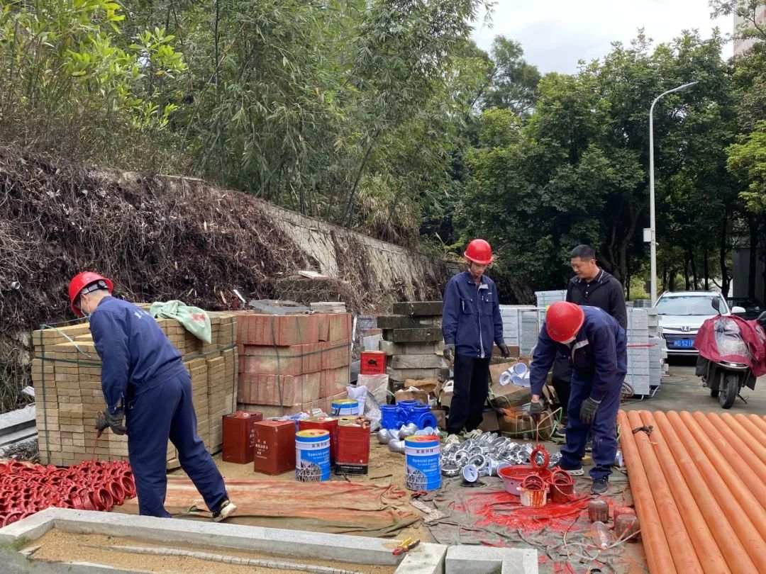 施工期间,漳州校区水电维修部严格遵照施工方案、中心“5D管理”的要求及行业规范,克服施工范围大、人员少、工序杂等难题,积极协调各项工作、科学布置任务。一面组织专业人员勘察现场、及时安排材料进场,一面组织施工队伍开展管道开挖、墙体取孔工作,有条不紊地做好消防管刷漆、管道安装联通、进水阀门改造及通水试压等施工工序。