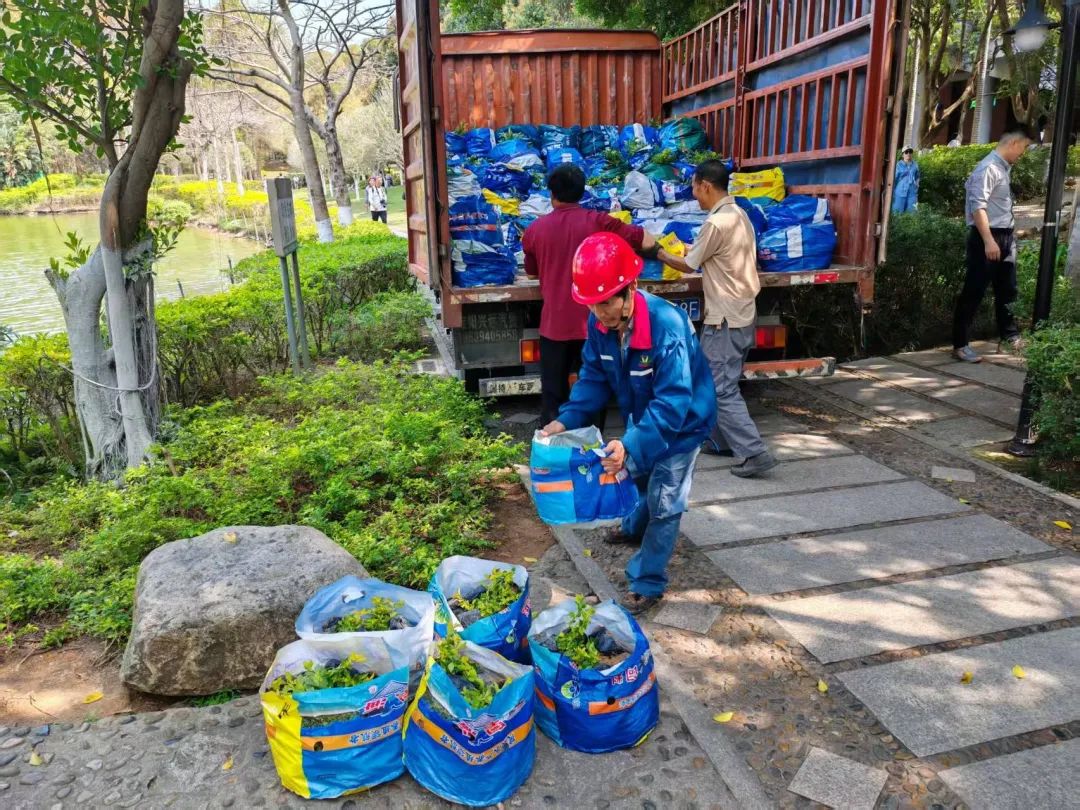 春回大地,草木蔓发。春季既是绿地养护管理工作的关键时期,也是苗木补栽补种的黄金期,针对思明校区部分区域存在缺株断垄和地表裸露的现象,公环中心绿化保洁部紧抓春季苗木补植有利时机,以净化、绿化、美化为抓手,组织开展春季绿植补栽补种工作,进一步提升思明校区绿化景观效果,助力美丽校园建设。