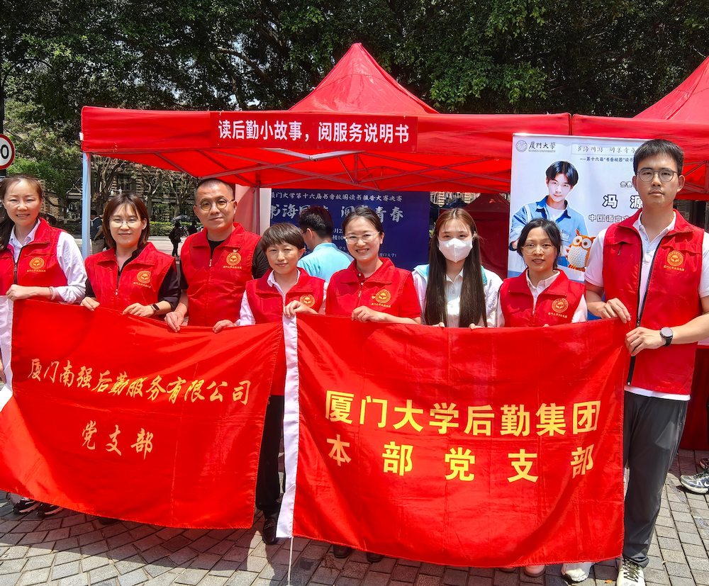 4月23日,在第30个世界读书日到来之际,厦门大学“最是书香‘满’厦园”世界读书日联合地推活动在思明校区三家村学生活动广场举行。后勤集团本部党支部与南强后勤党支部积极响应活动号召,精心策划“读后勤小故事,阅服务说明书”主题活动,以阅读为桥梁,搭建后勤与师生沟通的文化纽带,展现后勤服务的温度与深度。