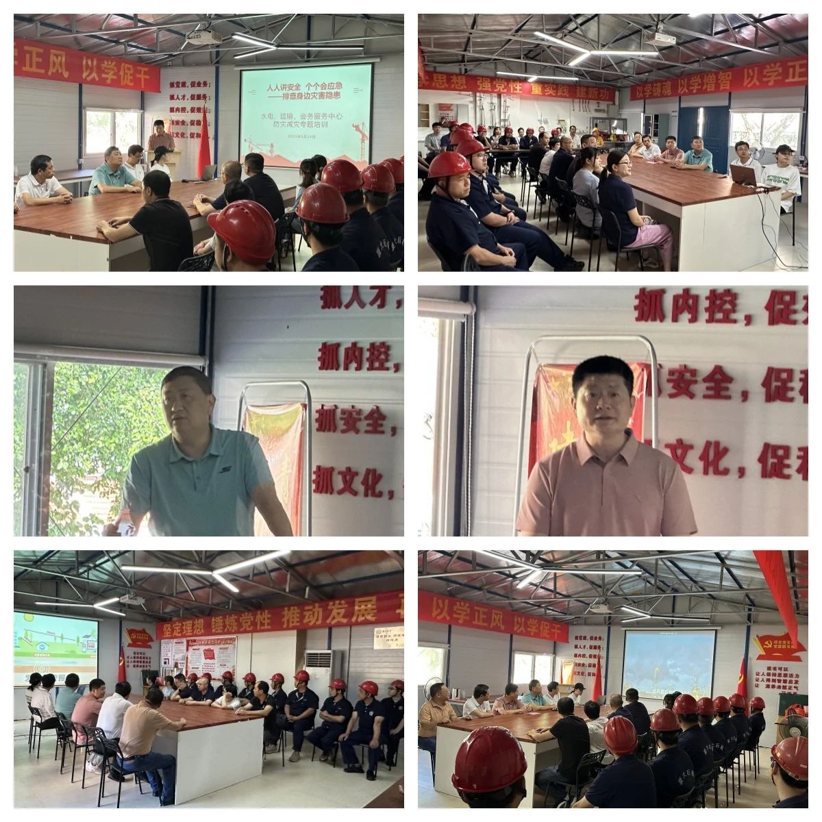 为提升培训实效,水电服务中心主任李春海在实战演练前召集全体员工至水电实训室进行集中学习。通过视频学习防灾减灾的重要性、各类灾害应急处置规范等知识,强化员工防灾减灾意识,提高理论知识水平,进一步提高员工对风险的预判能力。