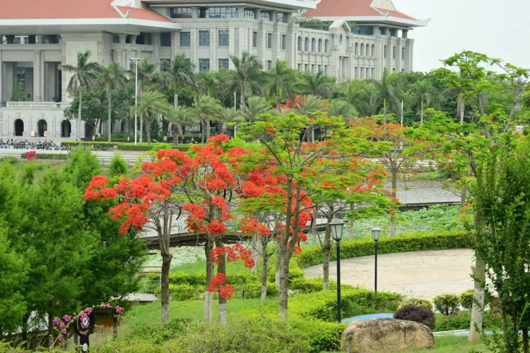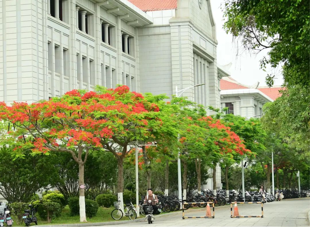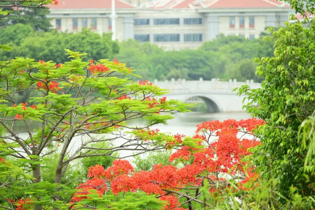 盛夏的厦门大学翔安校区,凤凰木的枝头燃起一片赤焰,灼灼花影倒映芙蓉湖面,为这座“山海花园”增添了浓墨重彩的一笔。年复一年,凤凰花以“一季送别、一季相迎”的独特姿态,见证着学子们从“初见”到“远行”的成长轨迹。