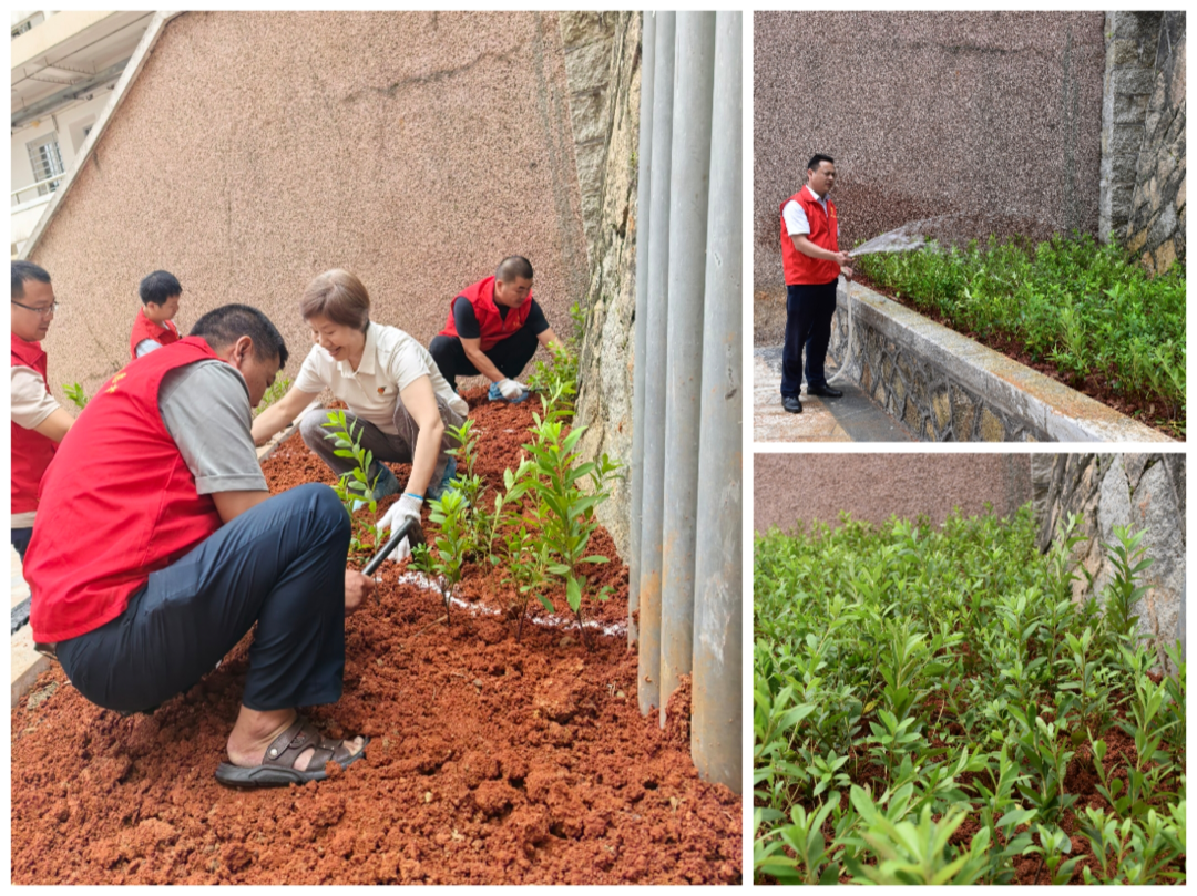 “绿色先锋”突击队:队员们身着志愿红马甲,胸前党徽熠熠生辉,化身“绿色使者”,迅速在园区指定区域开展绿植种植。他们挥动小铲子,刨坑、植苗、培土、压实、浇水,动作娴熟,配合默契。一株株新栽的绿植昂然挺立,为曾经略显荒芜的角落注入了勃勃生机。阳光下,跃动的“志愿红”与茁壮的“新生绿”交相辉映,不仅美化了园区环境,更将绿色发展的理念和生态保护的责任深深植根于每个人心中。