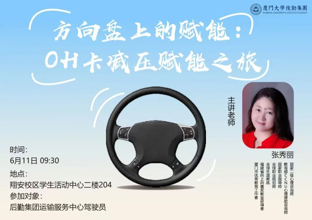为深入贯彻落实集团党委关于员工心理健康工作的部署要求,提升驾驶团队凝聚力,6月11日上午,在集团党委的指导下,运输服务中心联合集团团委,特邀学校心理咨询中心张秀丽老师在翔安校区学生活动中心开展了一场别开生面的“赋能减压”OH卡主题沙龙活动。中心党员管理骨干、驾驶员积极参与,在互动体验与专业引导中释放压力,收获心灵成长。