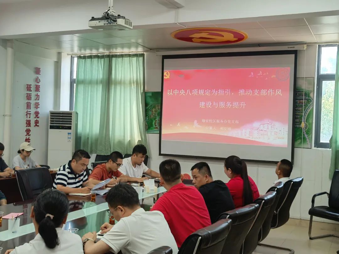 6月18日,翔安校区服务办党支部会议室里气氛热烈,一场别开生面的党课正在进行。支部书记郑剑培结合深入贯彻中央八项规定精神学习教育开展题为《以中央八项规定为指引,推动支部作风建设与服务提升》专题党课,此次党课旨在让每一位党员都能清晰认识到自身责任,切实为师生办实事。