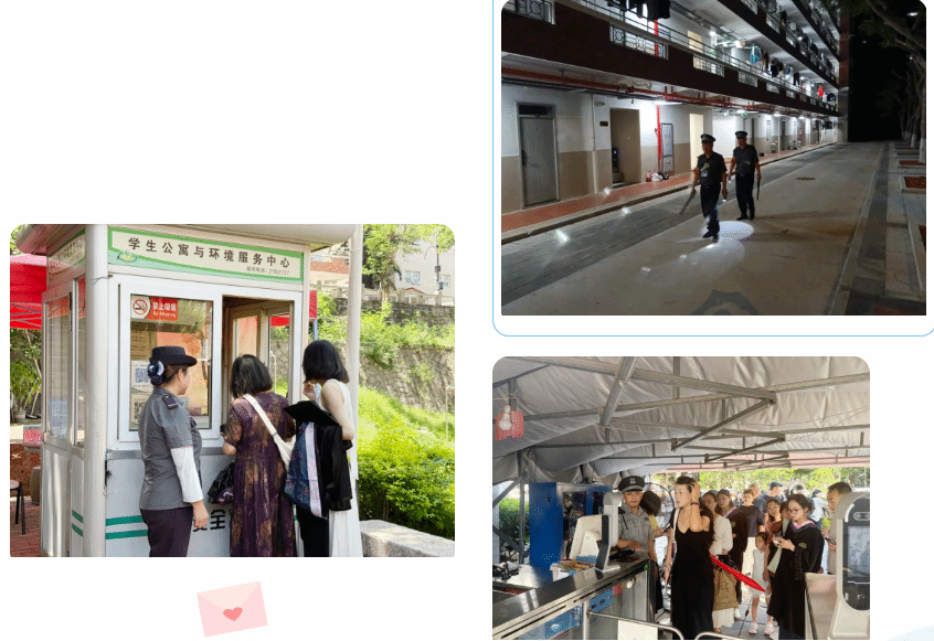 毕业季人员流动频繁,安全防范尤为重要。校门安防员严格校门管控,加强对进入校园人员、车辆的查验。宿舍安防员认真做好大件物品出园区的登记,加大园区巡逻力度。大家齐心协力,为毕业生站好“最后一班岗”,全力守护校园的安全。