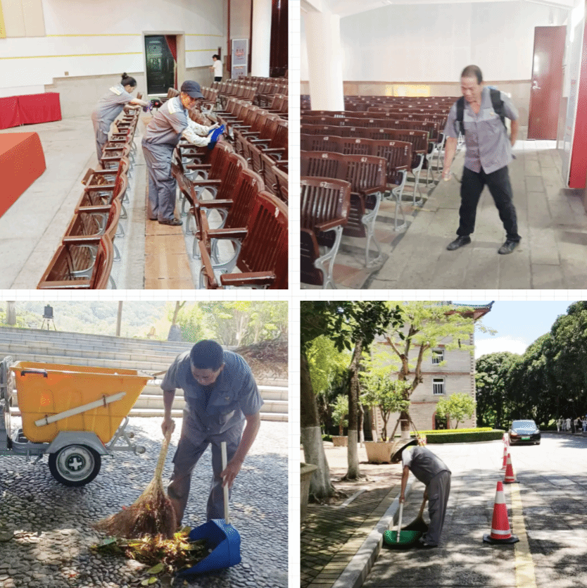 此外,中心还加大校园核心区域流动保洁力度,与生活垃圾直运公司积极协商,加强毕业季垃圾清运,确保校园环境保持干净整洁。