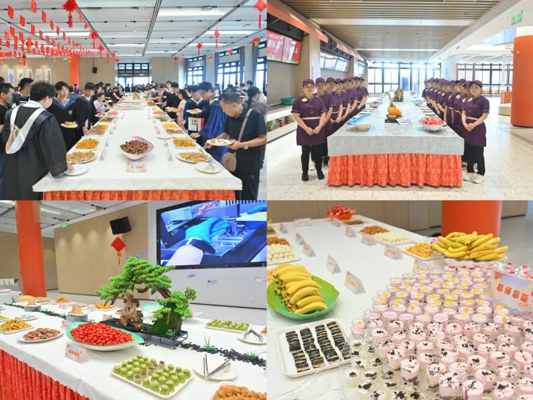 餐饮部精心做好2025届毕业生冷餐会的用餐保障筹备工作,从场地布置、氛围营造到食品制作,均依照既定方案有条不紊地推进各项任务顺利开展。确保菜肴花色多样、口感丰富,让莘莘学子留存并延续关于母校的独特味蕾记忆。此外,校区餐厅共承办了10场毕业聚餐活动,为毕业生打造精彩难忘的饯别宴会。