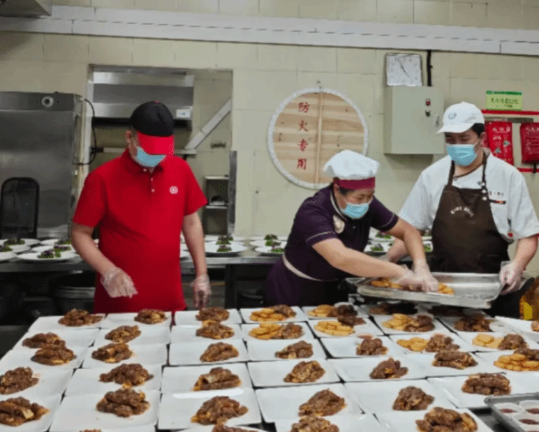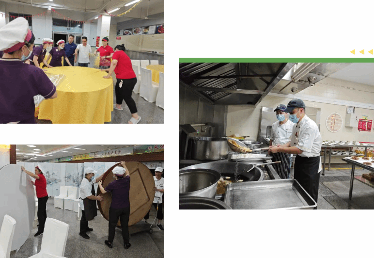从成立专项筹备小组到落地执行的21天里,方案研讨、菜品设计、物资调配、场地布置、食材溯源、流程优化……每一个环节都经过反复推敲。各部门协同作战,严格把控食品安全关:从凌晨采购的新鲜食材到规范的加工操作,从精心布置的就餐环境到贴心的服务流程,以高度的责任心与高效的执行力,为每一场活动筑牢保障根基。