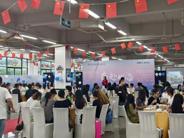 三场自助餐,富有特色。各餐厅将“前程似锦”的炒饭、“鹏程万里”的烤翅、“吉庆有余”的烤鱼、“扬帆起航”的烤羊腿等菜品呈上餐台,让毕业生在自由取餐的轻松氛围里,畅聊青春往事,让笑声与碰杯声交织成青春的回响。
