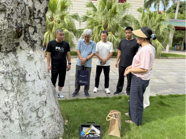7月15日,学校资产与后勤事务管理处邀请厦门市绿化中心、园林植物园的园林专家来校指导。专家们实地查看了校园树木,结合树木的生长情况,给予了病虫害防治、安全隐患处置及日常养护等方面的专业指导和建议。