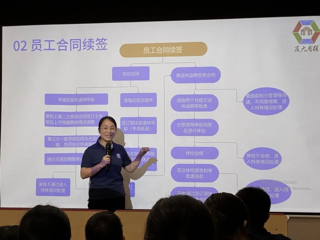 随后,培训进入课程环节,聚焦人事行政日常管理领域,通过多维度解析,夯实用工安全基础。