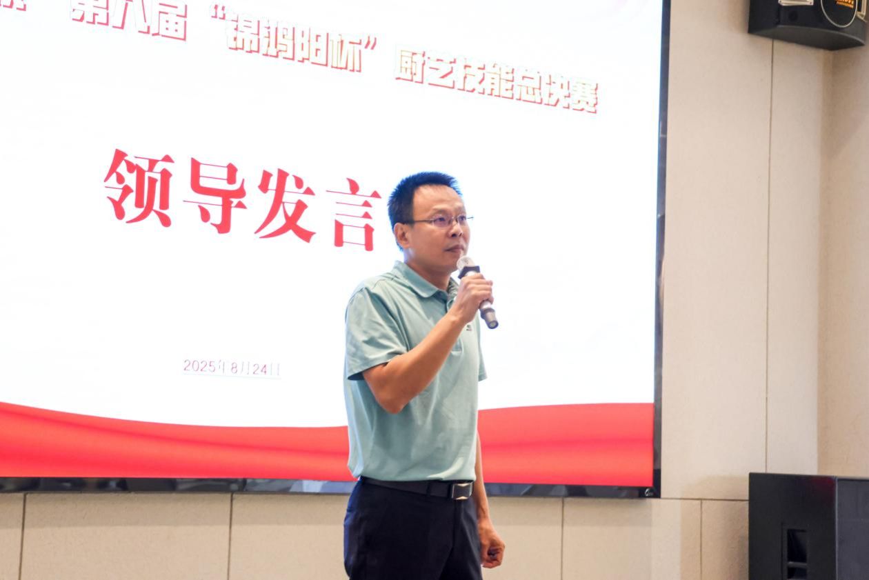 公司总经理罗阳作赛前动员,本次厨艺技能竞赛是为全体员工搭建的一个展示才华、切磋技艺、共同进步的宝贵平台,它不仅仅是一场比赛,更是对大家日常专业技能和服务水平的一次全面检阅,希望全体参赛选手沉着应战,赛出风格、赛出水平,并预祝本次技能竞赛圆满成功。