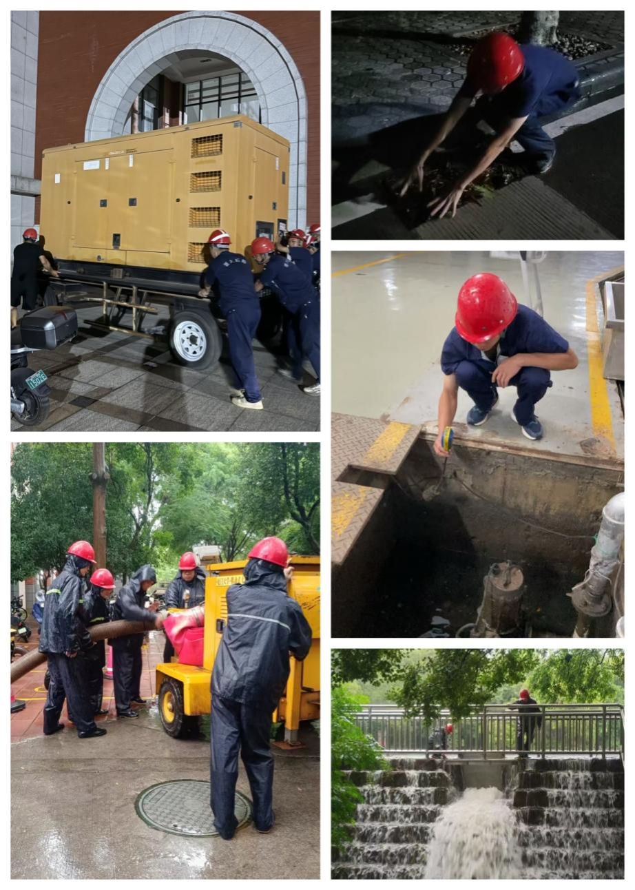 8月14日第11号台风“杨柳”登陆前,中心各部门闻汛而动、做足准备,更换老旧防汛沙袋、搬运大功率抽水机至预定位置、调试防汛抗台设备、水库及芙蓉湖等排水降低水位、巡检配电室等关键区域排除安全隐患;台风登陆时加强值守,并对台风影响的水电设施设备进行及时抢修、恢复使用,最大限度地减少了台风对校园造成的影响,保障了校园水电运行安全维稳。