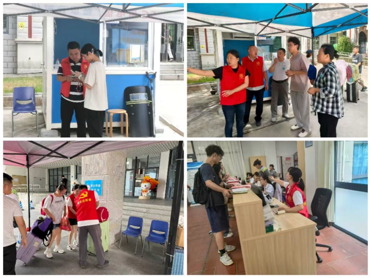 考虑到新生初入校园,对环境不熟悉,支部提前梳理各公寓周边的服务信息,确保志愿者精准回应需求,避免信息不对称影响服务质量。从清晨的第一缕阳光到傍晚的余晖,志愿者们始终坚守岗位,汗水浸湿衣衫仍不停歇,他们的身影穿梭在园区的各个角落:或帮家长拎生活用品,或为新生讲解服务流程,或协助疏导人流,以朴实行动化解迎新高峰中的各种难题,充分彰显基层党员的先锋模范作用。