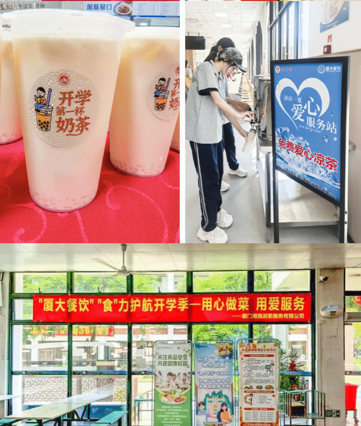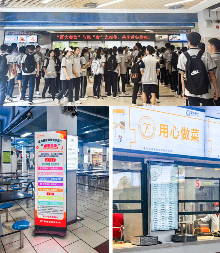 烟火人间,温暖开序;方寸之地,焕新装点。新学期伊始,公司经营的各学校餐厅匠心营造迎新氛围,推出各类迎新活动:为同学们准备“开学第一瓶”等惊喜;军训期间,免费送上爱心凉茶、绿豆汤,为学子“清凉一夏”,护航学习;前厅设备焕新,新增智慧电子屏、广告机等新式设备打造科技体验感,以科技化手段实现智慧导览,让美食的方位跃然屏上,引导更为直观,探索充满惊喜!“厦大餐饮”人的创新和贴心服务,点燃了积极向上的新学期氛围,增添了满满的仪式感,陪伴学子开启新篇章。