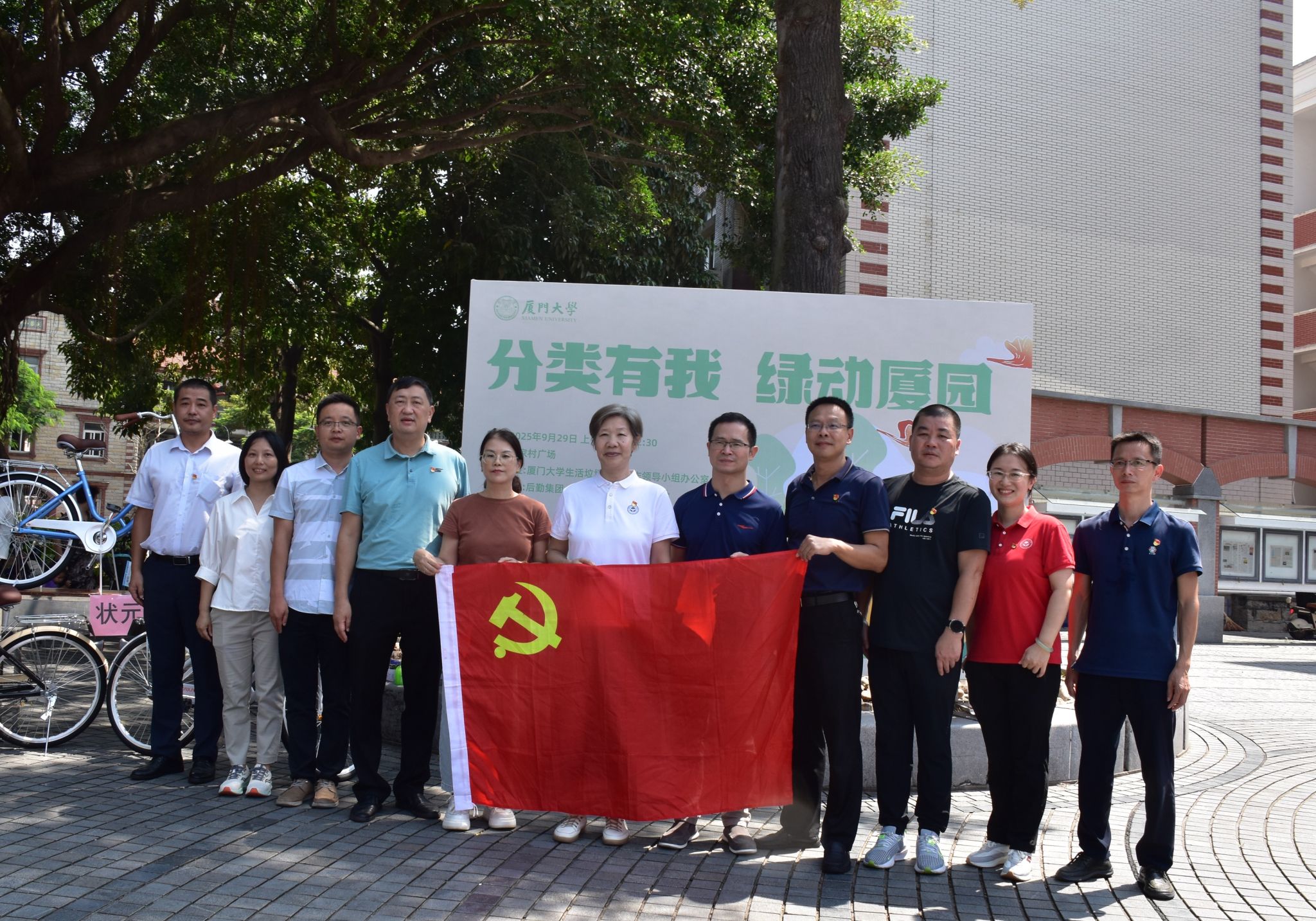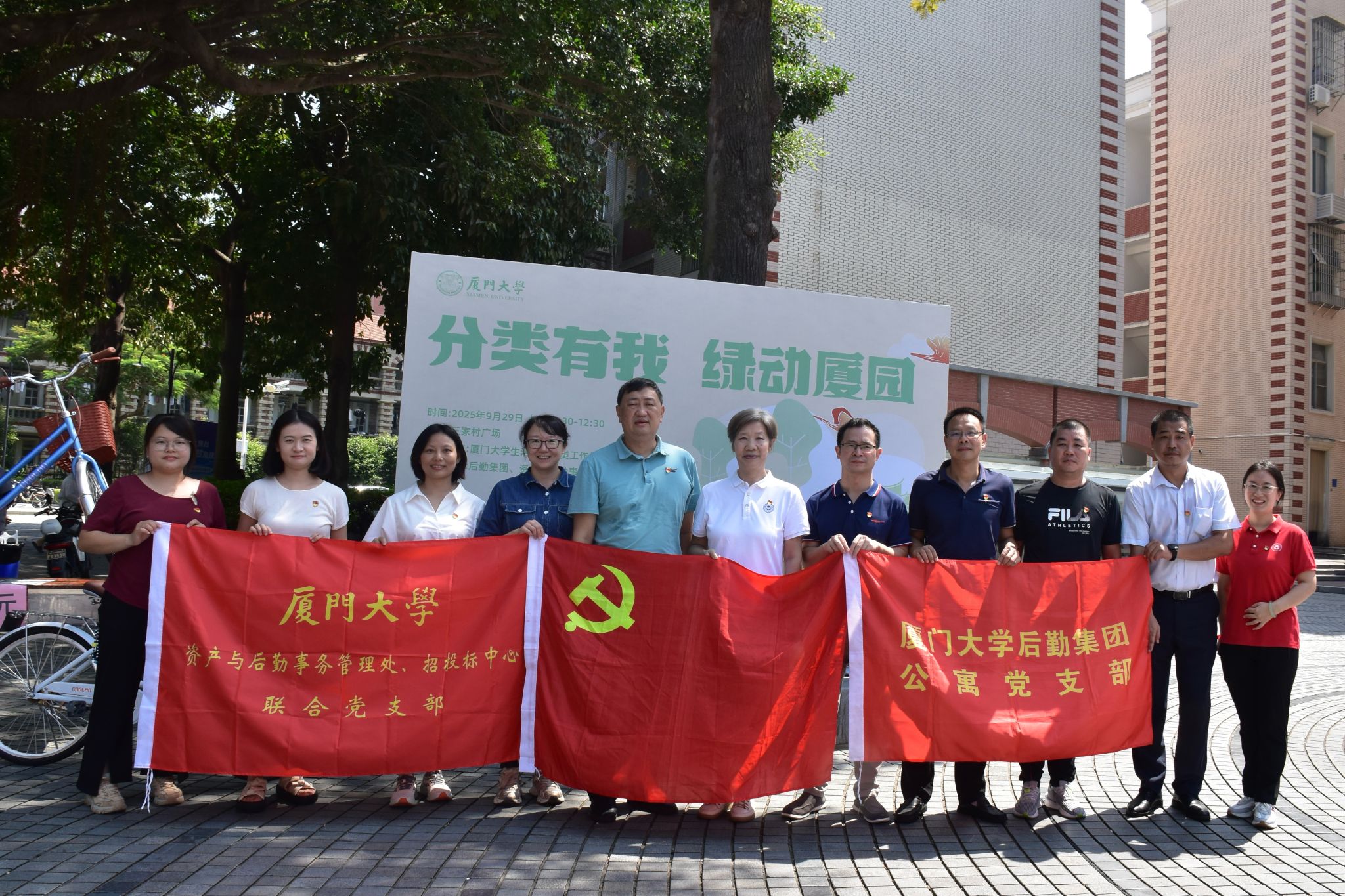 为深入贯彻落实绿色发展理念,持续强化全校师生垃圾分类意识,在后勤集团党委的大力支持下,9月29日上午,公寓党支部联合资产与后勤事务管理处、招投标中心联合党支部,本部党支部、南强城服党支部,学生公寓学生工作办公室,白城社区党委在三家村学生活动广场开展以“分类有我,绿动厦园”为主题的垃圾分类宣传活动。