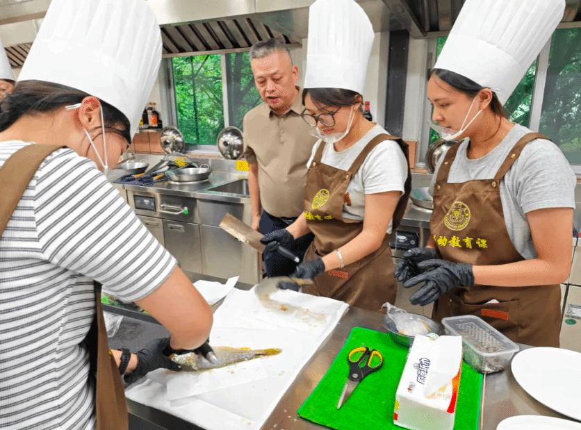 “自己动手处理食材后,才明白‘一颗虾、一块鱼’背后的劳动成本,现在打饭总会下意识说‘少一点,够吃了’。”薪“伙“食课劳动教育课堂上,张同学擦了擦额头的汗,笑着展示刚炒好的椒盐虾。