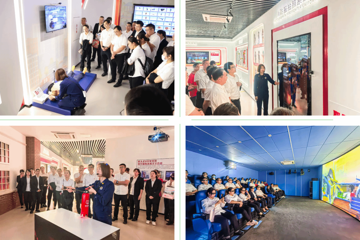 在消防队史馆区,大家认真聆听了中国消防事业及消防科技的发展历程,深刻感悟消防事业的进步与变迁。在消防知识科普区和互动体验区,讲解员借助先进的声、光、电、触控及体感技术,生动展示了消防科技原理与常见自然灾害应急避险知识技能。公司管理骨干们也在实地模拟操作消防设备、辨识消防标识、体验公交车、建筑火灾等4D场景中进一步了解和掌握了自救技能。