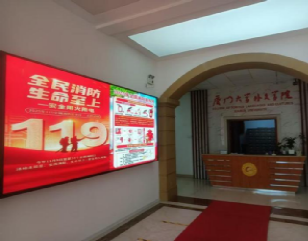 ▲悬挂横幅、张贴海报、滚动播放LED显示屏等多种形式宣传