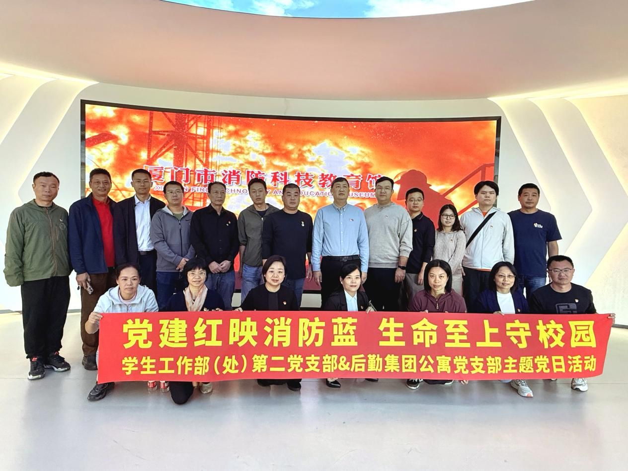 为深入推进消防安全月宣传教育工作,切实提升师生员工消防安全意识和应急处置能力,11月24日下午,公寓党支部与学生工作部(处)第二党支部开展共建活动,活动以“党建红映消防蓝 生命至上守校园”为主题,双方联合组织党员走进海沧消防教育训练中心参观学习。后勤集团副总经理王裕民、双方支部相关人员参加活动。