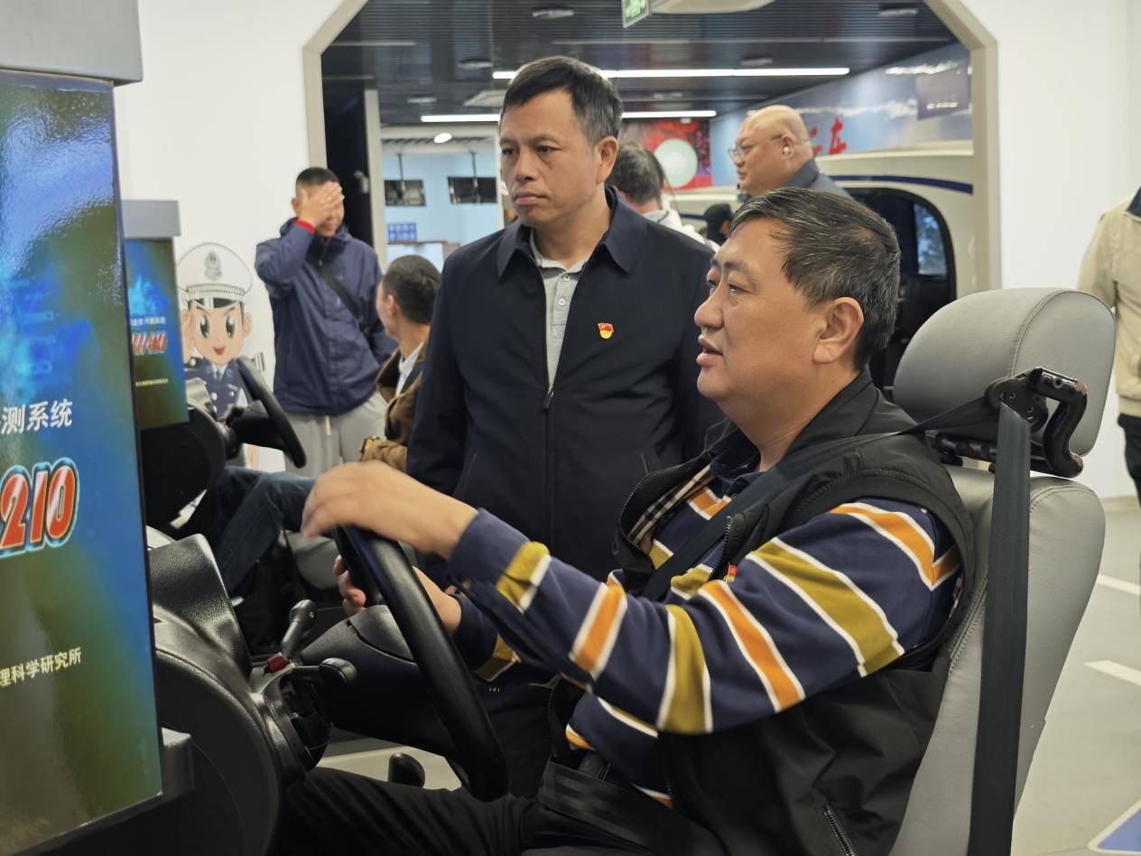 在讲解员的引导下,全体人员有序参观了宣传教育基地的“一厅四区”(序厅、交通安全管理发展区、驾驶评测训练区、驾驶风险体验区及交通事故警示处置区),借助声、光、影及交互技术,沉浸式学习交通安全发展历程与风险防控要点,强化安全认知。