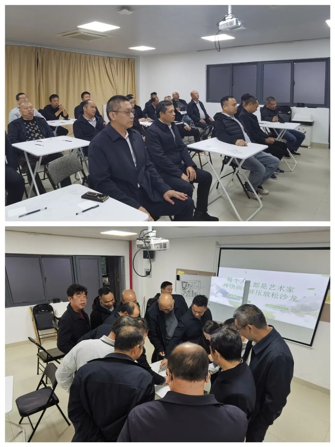 活动中,张秀丽老师首先向大家介绍了禅绕画的特点,强调其无需专业绘画基础、注重过程体验的独特优势,鼓励大家放下顾虑、自由创作。随后,在张老师的专业引导下,驾驶员们执笔绘纸,从基础线条入手,循序渐进进行勾勒、填充,全神贯注于每一笔刻画。张老师不时巡回指导,耐心答疑,引导大家放下杂念、回归当下,在重复而有序的创作中舒缓情绪、提升专注力。