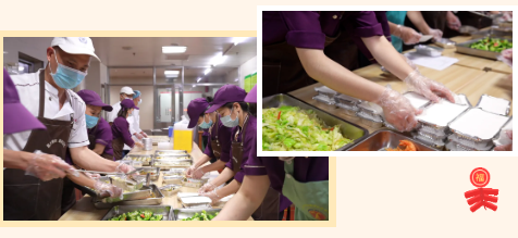 食堂还提供打包送餐服务。热盒饭经精心打包,送往校园各处,准时抵达每个值守岗位。