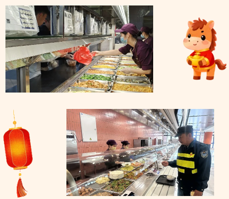 旗帜领航,使命在肩,在党员骨干带领下,饮食服务中心员工在春节期间坚守岗位,用奉献诠释担当,用服务传递温暖。
