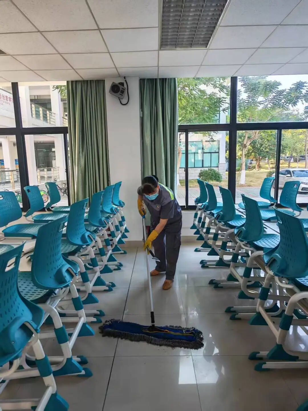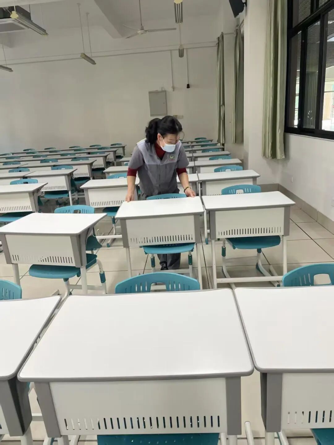 阳光透过窗棂,照亮焕然一新的教室,洁净的桌面、清新的空气、规整的布局,承载着公教组对学子的暖心守护,更践行着“服务无止境、安全无小事”的坚定信念。全体人员深耕细节、协同发力,以精益求精的态度提升服务质效,静待学子携新春喜悦归来,以全新姿态奔赴新学期。