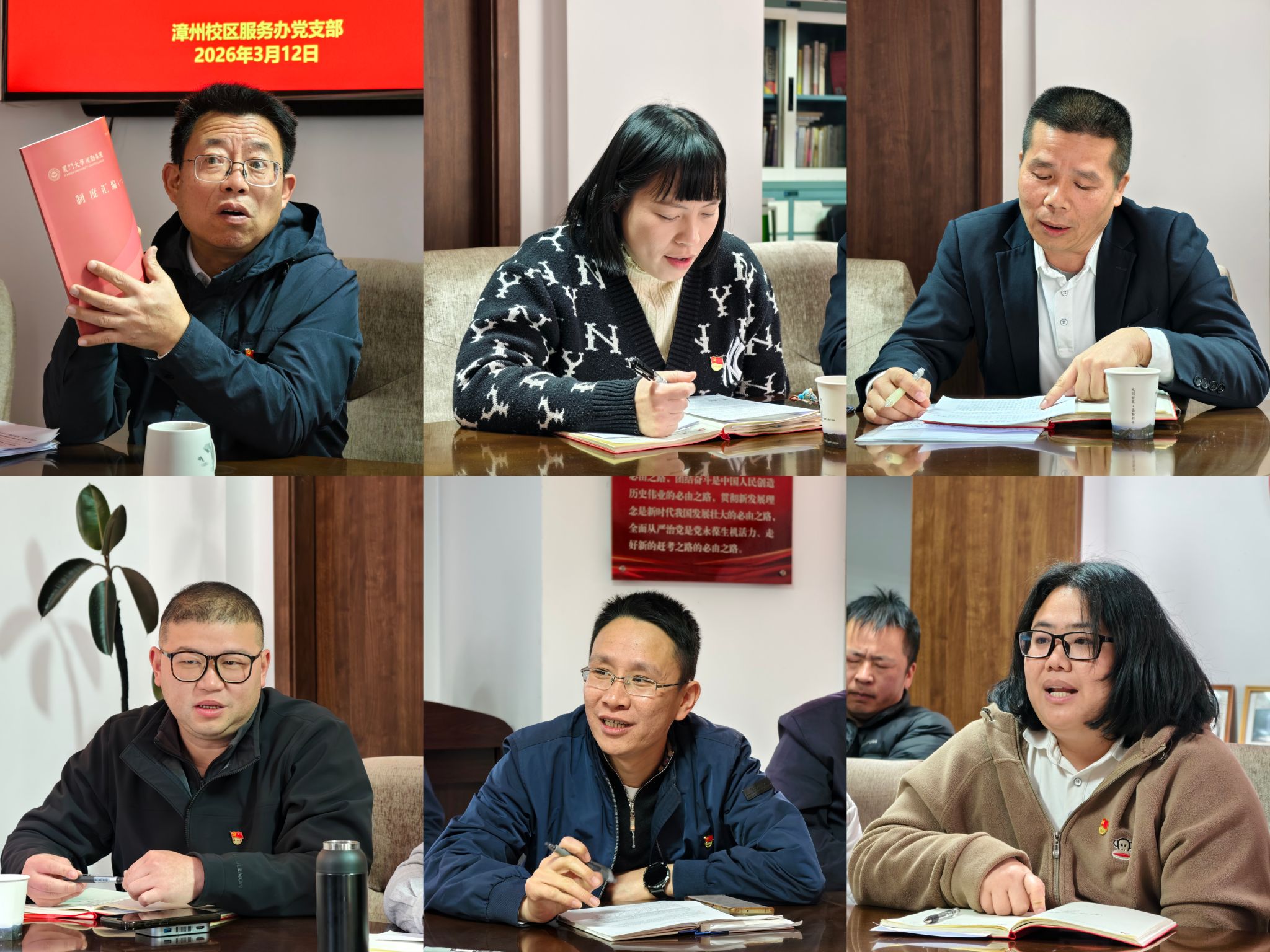 会上,党支部书记张建波带领与会党员共同学习了全国人大代表、厦门大学党委书记、中国科学院院士张荣书记在2026年全国两会“代表委员说”中的讲话精神,学习了《习近平关于树立和践行正确政绩观论述摘编》部分章节,并部署了《中共厦门大学后勤集团委员会关于在集团开展树立和践行正确政绩观学习教育的实施方案》。