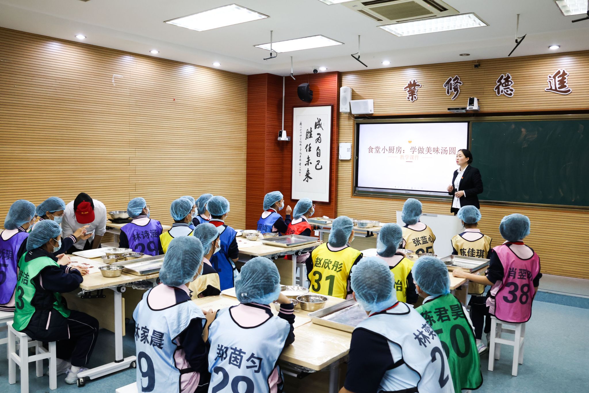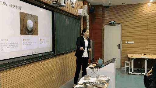 首次课程围绕汤圆展开。餐厅经理欧阳梅红通过多媒体课件,系统讲解汤圆的历史起源、原料准备与制作过程,并细致拆解“揉面、包馅、搓圆、煮制”的全流程操作要点。从面团软硬把控到下锅煮制技巧,她逐一进行了示范教学。