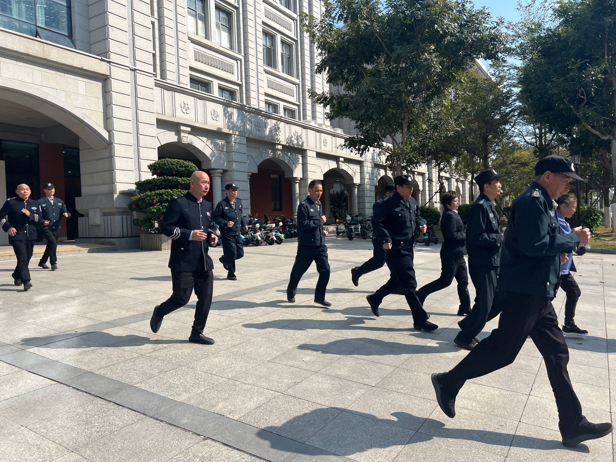 随后,主楼群维序队长陈辉组织人员疏散演练。随着紧急疏散警报响起,全体人员按照预定疏散路线,快速有序地向室外安全区域集结。抵达安全区域后,现场指挥人员迅速清点人数,并核实各岗位、各区域人员到位情况,确保无一遗漏。吴峰对本次疏散演练进行总结,复盘了其中的亮点与不足,进一步强调了疏散过程的细节规范与应急要点。