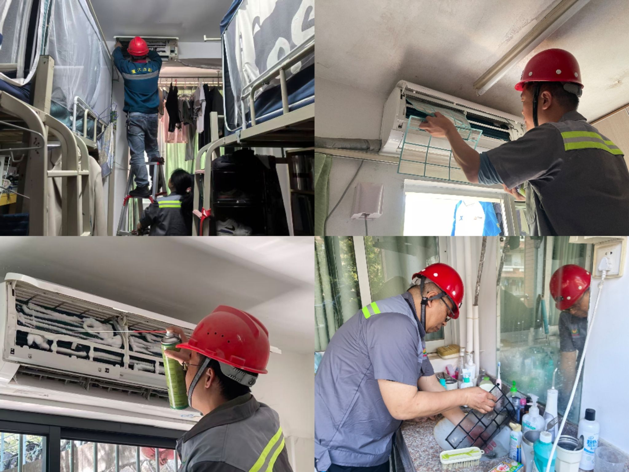 随着气温逐渐回升,校内空调即将迎来使用高峰期。为切实保障全体住宿同学的身体健康,营造安全、洁净、舒适的公寓居住环境,学生公寓与环境服务中心提前谋划、精心部署,全面开展三校区空调专项清洗工作,以专业标准、严谨流程、暖心服务,为同学们的校园生活筑牢健康屏障。