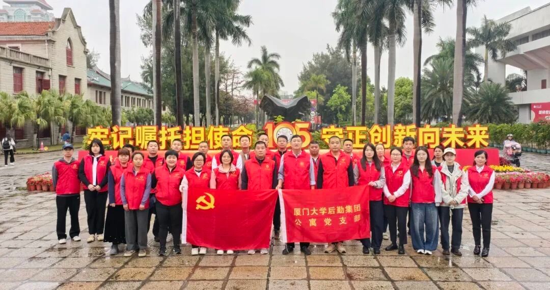 为迎接厦门大学105周年校庆,营造干净、整洁、优美的校园环境,后勤集团公寓党支部开展校园清洁志愿服务活动。集团副总经理王裕民、支部党员、入党积极分子参加了本次活动。