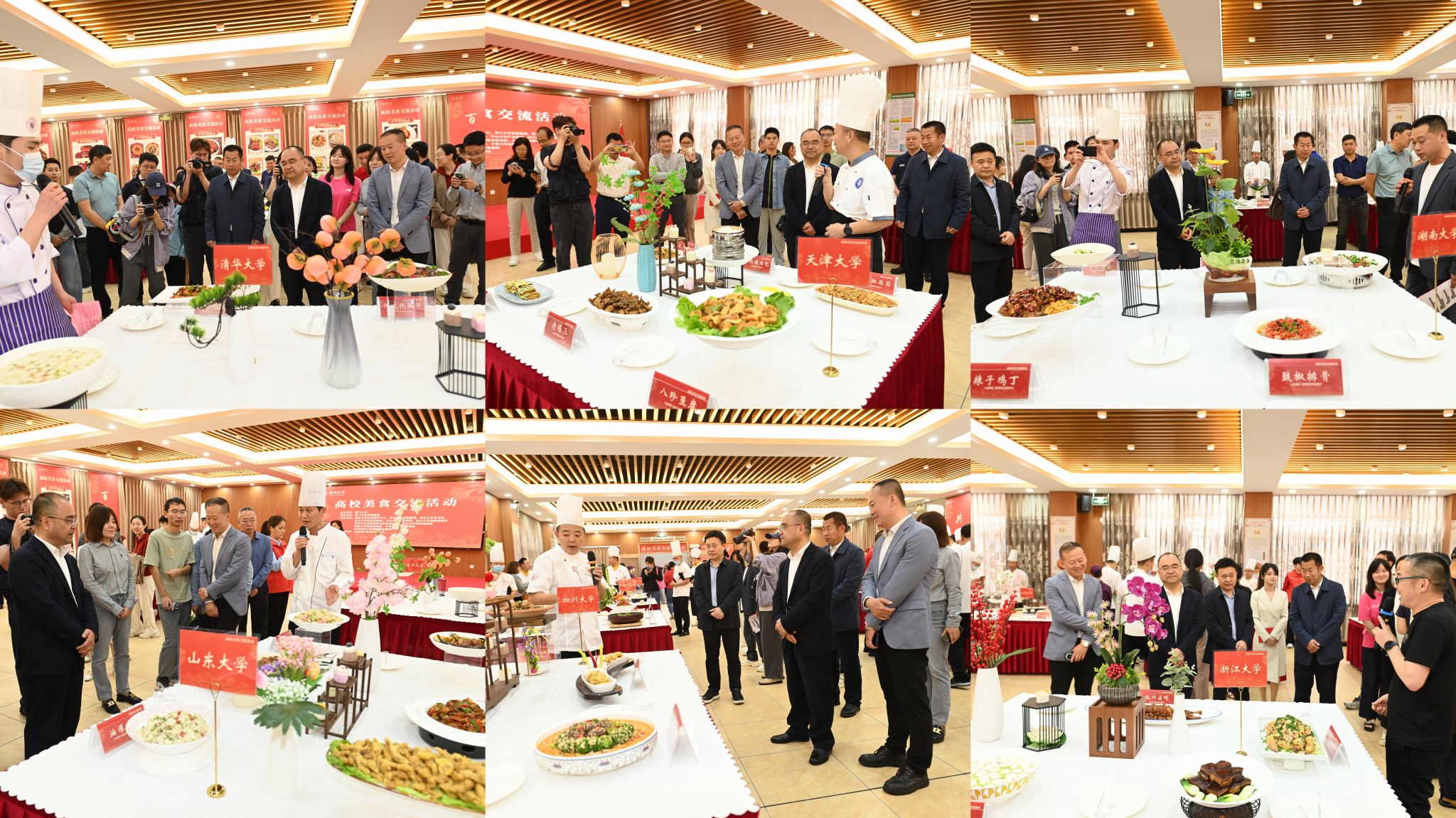 品鉴现场,展台如画,人流如织,香气满室。既有承载地域记忆的传统佳肴,亦有融入校园生活的创意风味。复旦大学的上海红烧肉甜润入心,浙江大学的东坡肉酥香醇厚,尽显江南风味的温婉雅致;清华大学的茶香虾清雅怡人,天津大学的煎饼果子亲切朴实,透出京津风味的敦厚底蕴;中山大学的盐焗手撕鸡皮爽肉嫩,广式猪脚姜暖润甘甜,诠释着岭南饮食的精妙细腻;武汉大学的莲藕排骨汤醇和温补,湖南大学的剁椒鱼头鲜辣开胃,洋溢着华中大地的热情质朴;四川大学的陈麻婆豆腐麻香鲜辣,贵州师范大学的凯里酸汤肥牛酸爽醒神,展现西南饮食的酣畅淋漓;宁夏大学的西夏羊排浓郁不膻,山东大学的临沂炒鸡酱香四溢,尽显西北与齐鲁的豪迈气韵。东道主厦门大学亦诚意奉上东苑烤鱼、南光麻辣香锅、芋泥烤奶等承载厦大人共同记忆的本土美味。