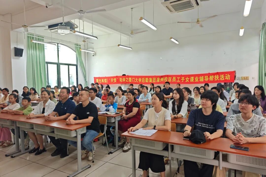 首次开课前举行了启动仪式。漳州校区服务办党支部书记张建波、集团团委书记李春香、志愿者、家长及孩子参加仪式,仪式由厦门大学嘉庚学院管理学院团委副书记赵卿主持。仪式上,赵卿带领大家回顾 “天使” 助学活动的温暖过往,并叮嘱志愿者们在服务过程中要始终秉持耐心、友善、温和的态度,用心陪伴、细心辅导,暖光再续,守护每一位孩子的学习与成长。张建波在致辞中,向管理学院青年志愿者协会的倾力支持表示衷心感谢,同时嘱咐孩子们遵守课堂纪律、珍惜学习机会,在辅导中收获知识、全面发展、快乐成长。