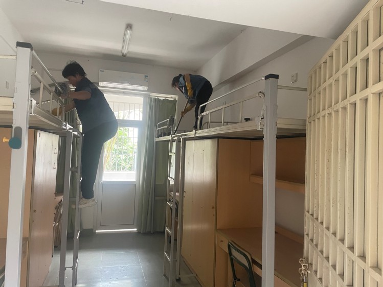 宿舍组安排园区安防员、保洁员提前做好21个园区值班室卫生及公共区域大环境卫生,清扫楼栋周边环境的绿地树叶、纸屑,冲洗垃圾收集点路面污渍;做好校友入住若谷园区150间宿舍500个床位的保洁工作,并协助嘉庚学院资产与后勤管理部反复检查园区卫生环境,确保校友回“嘉”住得舒适安心。